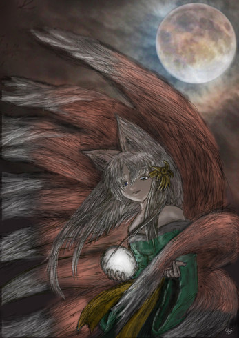 The coloring is so nice! i love her tails and the lightening bugs around her