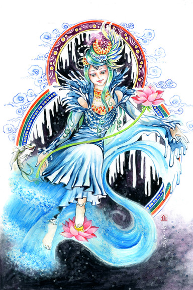 but now I see,she is a mermaid, (I mistaked her fish tail to be some kind of wave spiraly dress *.*' )