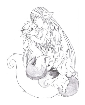 This is one of the longer pieces I've done in a long time. Mostly 'cause I wanted to get back into doing detail work. Though I still have a long way to go *laughs* In this work I ended up trying a lot of new techniques (for me) Maybe it was a bit too much at once? Still, it was a lot of fun, 'cause I acctually pushed myself to keep coming back to it even when I felt exhausted with it. The trick, I find, it to make each area as interesting as possible for me to do. Otherwise I loose interest after the face *laughs* Looking at it now, I still think ther are a couple things I could do to it....See Close ups here: [link]