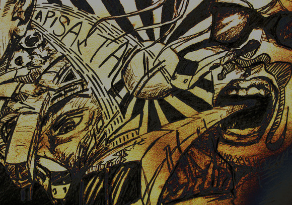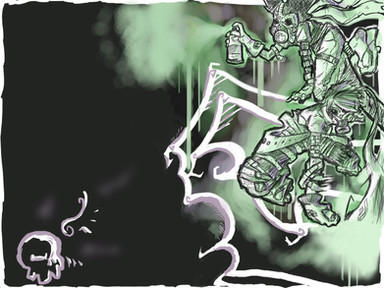 very well done! i especially like the sepia color scheme - it works very well for this piece, and its busy but not to the point where its confusing, which can be hard to accomplish sometimes - great idea using the perspective of i guess the wall he may be tagging with the paint spray at the front