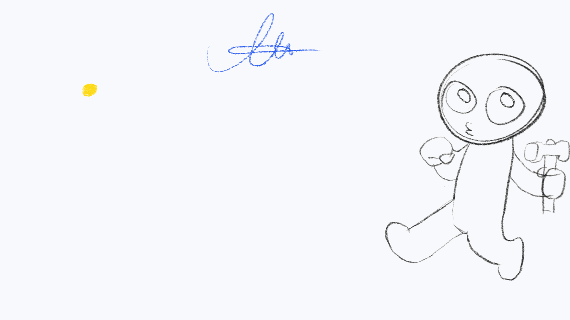 So the final assignment for the Traditional Animation course was to animate a character trying to accomplish something with effort. The teacher said she was planning to edit them as a montage (in the end she hasn't) and told us to think about the theme song from "Rocky" ("Gonna Fly Now"). I tried thinking what would be really funny to see inside a montage like this, and decide watching a snail climbing up was it. Then I decided to animate the snail in sync with the song, use that as the beginning of the montage, and make another animation of the snail when he reaches the top, which would be the end of the montage. So after I made most of the animation (you can tell the snail isn't getting anywhere because I was trying to get the timing right) I showed it in class and the teacher wasn't crazy about the fact that there was no middle in this story or that I picked to animate a snail, she said I can do better. So I had to do another animation and with all the other work I had to do, another animation that should be more complex wasn't something I was excited for, especially with even less time to do it.So I made this rubbery animation you see in the GIF file and this one more well received. I made it rubbery cause the teacher loves follow-throughs (hence when I tend to over-animate everything) and the easiest way to get it without adding hair or tails or something was to make it rubbery. They liked it, but told me to cut the part with the worm coming out of the hammer since they didn't knew what to make of it. I made another version without the worm and another one in the link, where both animations are combined into film and that was what I showed in the last lesson. They liked so much they didn't need to see the version without the worm. I do have to say that the character in the rubbery animation seem to have grown a lot between the first and last frame and difference in side is truly jarring, yet no one notices this (and most people on DA who seen it also didn't notice cause I made a misspel like an idiot ), and once they do they demand to see the animation again to see how did this happen.