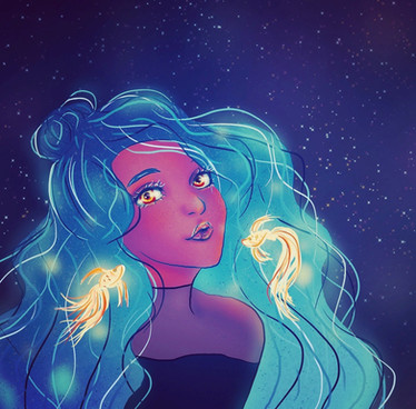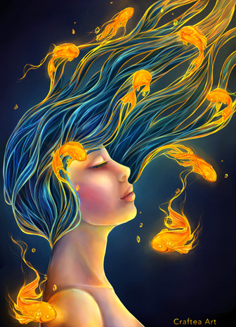 Is her hair turning into fish? (this looks great)
