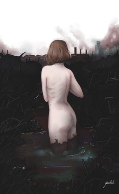 Oooh, great concept! I love how her hair transforms seamlessly into oil.