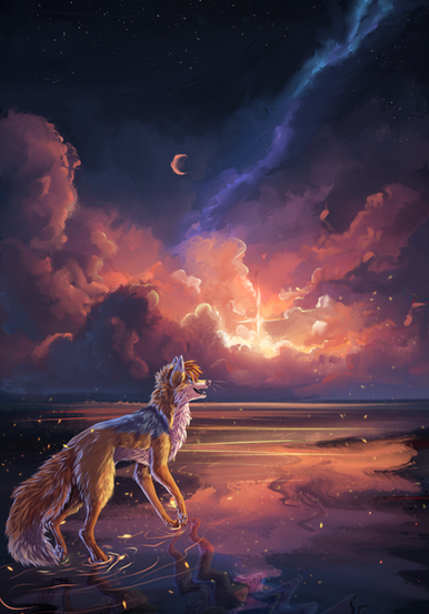 Lil magic starry fox, collecting the stars before the sun comes upI'm actually super happy I managed to complete this in nearly 2 days! That's the fastest I've been able to produce any art for a long time