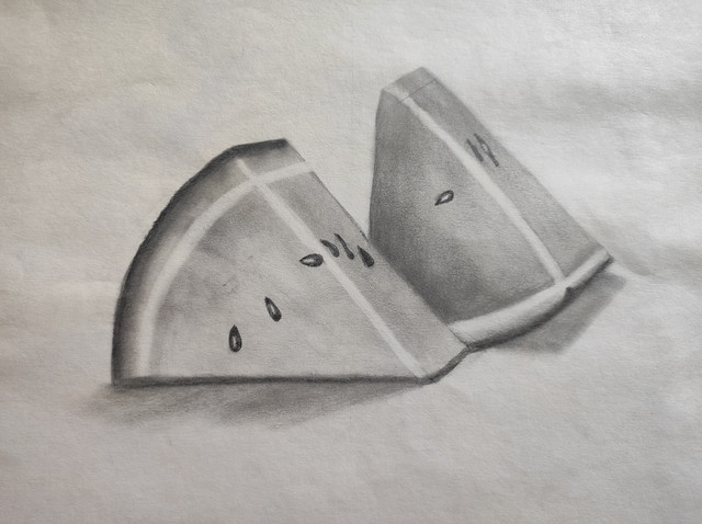 #basic #exercise #graphite #happy #shading #triangle #watermelon #blackandwhite #pencildrawing #penciltraditional #traditionalart #drawingtraditional