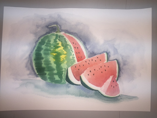 #blue #colours #drawing #exercise #fruit #fun #green #happy #practise #red #watermelon #watercolor #watercolour #watercolourpainting