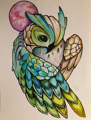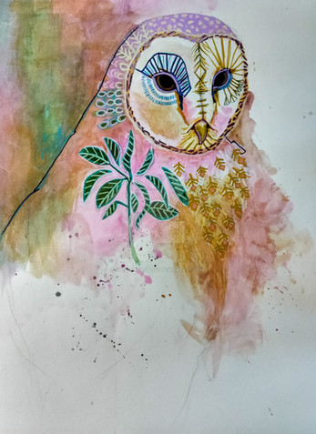 #bird #watercolour #traditionalart #animal #surreal #ink #pen #acrylic #plants #owl #colourful #flowers #forms #lines #shapes #text #art