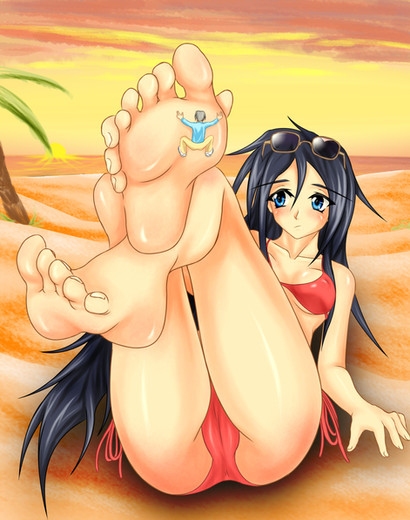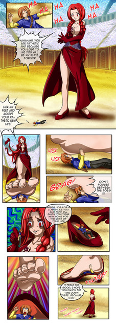 Very good drawing, although the little guy should turn around so he can kiss/lick her sole.