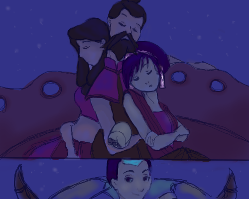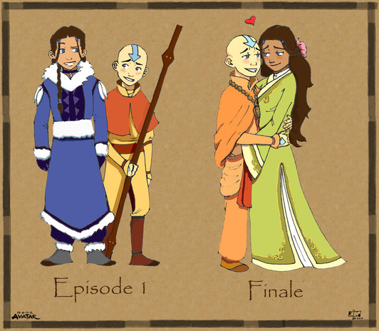 Oh.... My.... wow, that's great! XD Aang goes out of his way to grow hair(no more Arrow *tear*), Katara's hair loopies are no more, and all Sokka does is is change his outfit colors.