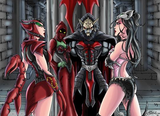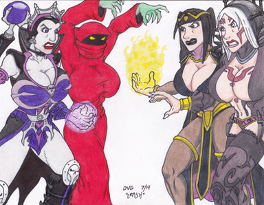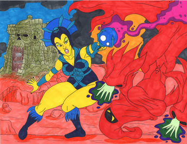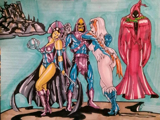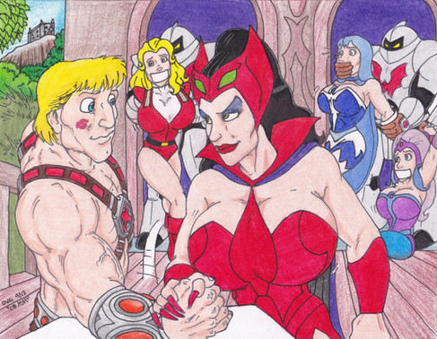 A commission. Here's why the rescue of the girls in part 1 failed! He-Man is completely distracted by Evil Lyn, Catra, and Shadow Weaver. Will he be enticed into their trap?I always love drawing the Masters of the Universe characters and coming up with the pose for Shadow Weaver was a lot of fun! Hope you all enjoy!