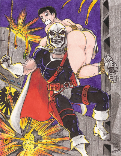 "We'll just see about that, skullface!"