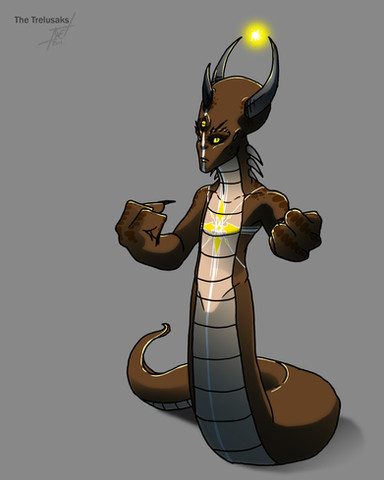 The female Reltic, they are more or less similar in features than their male counterparts however the forehead horn is smaller on them and their build is more slender. Like other reptile species, the Reltic females are also bigger than the males, most of the time 1-2 feet taller than the males.Related content