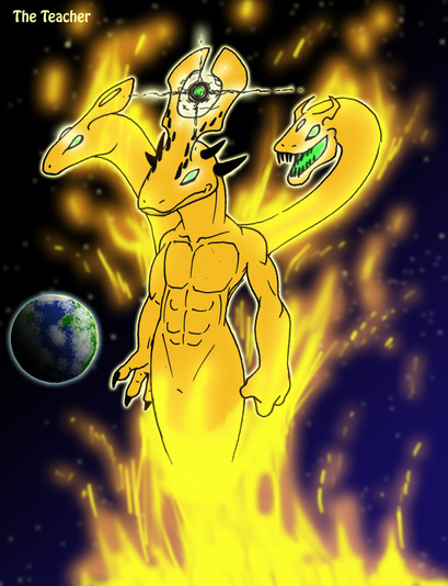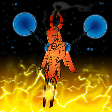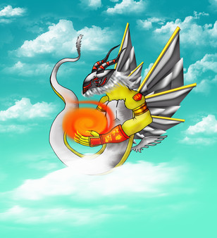 this boy looks really to kick some ass big time.the bottom white part could be a pillar of fire which leaves a trail of molten rock behid him which gives birth to legions of little fire demons.