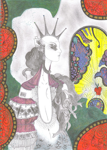 I don't think I colored it on the bus. XD I mostly did it in class and then left it at home and forgot about it, and I had finished over the last weekend. Ah, pastels. I like them for skies and stuff, but I wouldn't like to do a full picture with just pastels. Try to use the edge for sharp lines? You know, I saw somewhere that they had pencils with pastel tips. I'd like those. >.>
