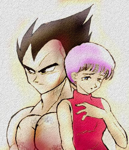 I added some happy bubbles into "vegeta's shirt" space because all the pinkness (despite my love for it) was bothering me. Now it looks more like what it was supposed to be.. Pink is the "background" for Bra.