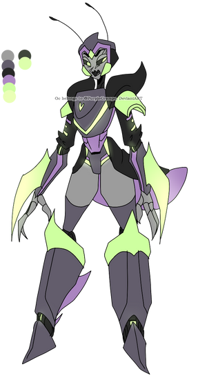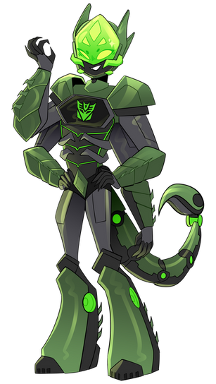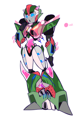 Think like Soundwave, Shockwave, and Knockout had a three way baby. Thats her XD
