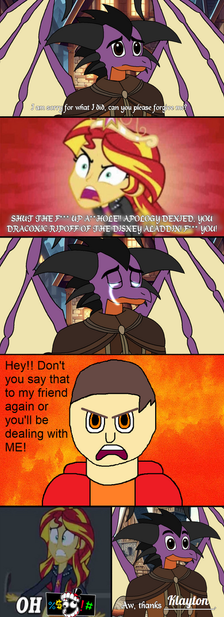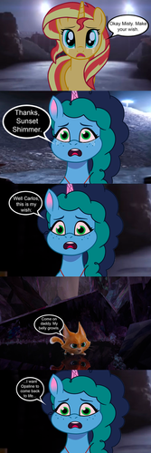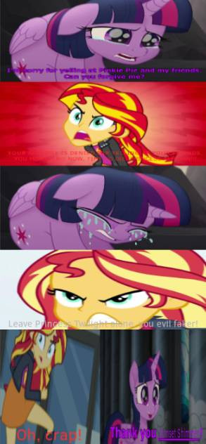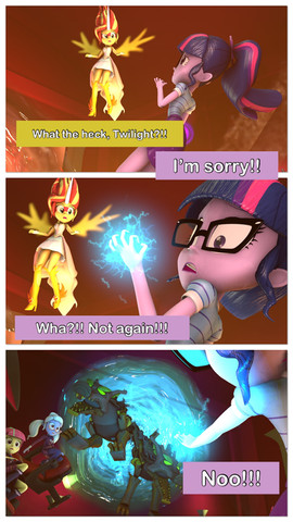 After telling Twilight about the canon event and time travel, Mom and I were faced with a problem... well, a big problem.And one more thing, in the fifth vignette, the one who is blue next to my mom (Kitty, of course) is not Sonic the hedgehog, Β it is me, Carlos Parker , the otter guy. Is another of my powers: I can spin just like Sonic.