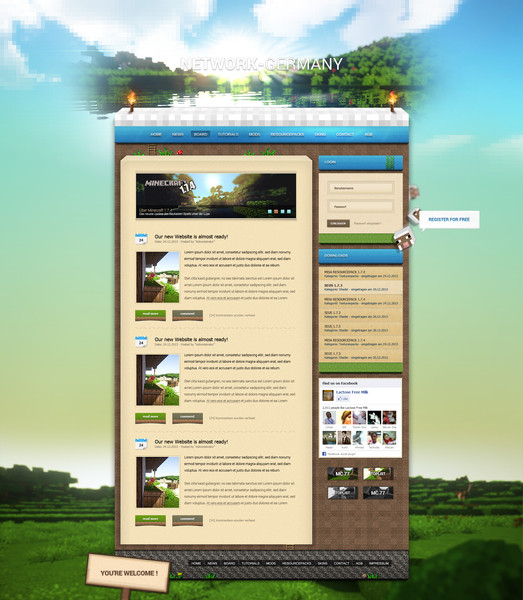 I did this awhile ago out of boredom (while not playing minecraft of course), both as a fan project and as a challenge to see how to best redesign the website. Part of my thought process was that basically, one of minecraft's key appeal lay in the creation of your own structures, which is why I designed it so the background could be swapped around / faded every once in awhile. That was fun thoughNOTE: This is not an official redesign, it is just a personal project (read: for fun). All assets, contents and the minecraft symbol/name remain property of Notch and Mojang.