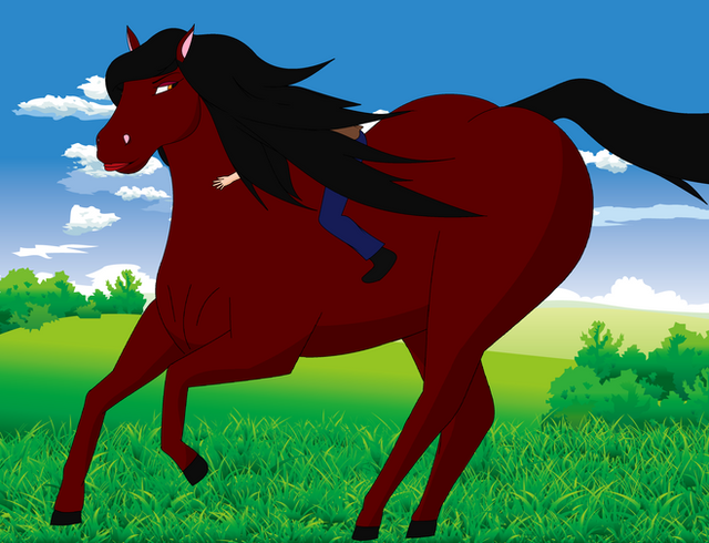 I had thoughts were I encounter him pulling a wagon of hay but i'm small and we try to form a friendship.