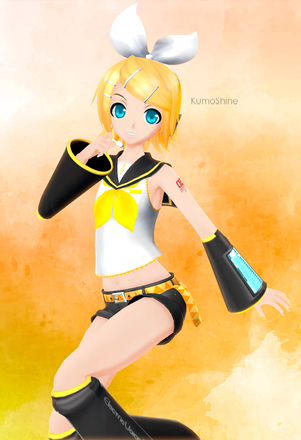 Rin is a girl with an attitude, but mostly cheerful and happy. Or Loli even. She has a short temper especially when in school if someone pisses her off. She often teases and jokes around with her friends/siblings when she gets a chance to. Hyper/Excited especially around friends or somewhere she loves to have fun at. She can be serious when she needs to. Very silly. She's best friends with Miku and introduced Miku to her brother. Since she is very similar to her siblings (Rinto, Lenka, and Len) she knows basically EVERYTHING about them. She can easily tell when someone is lying or telling the truth. She often gets in arguements with Len (cue Childish War), she gets along with Rinto best. She sometimes refers to Kaito as Uncle Kai.