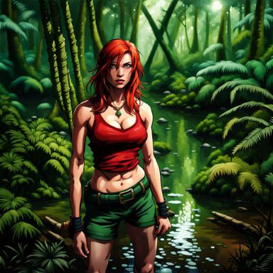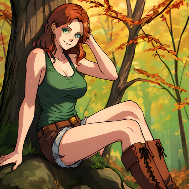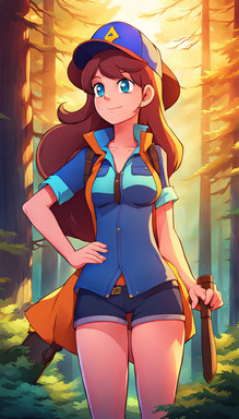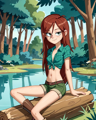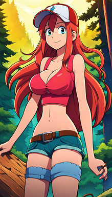 #digitalart #fanart #ai #dreamup #cartoon #forest #redhair #freckledgirl #redheadredhair #gravityfallsfanart #wendygravityfalls #wendy_corduroy #ai_art