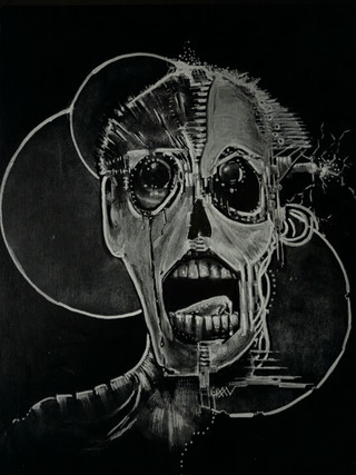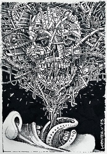 Beautifully done. I love the linework and stylization. The face is creatively rendered. Bizarre and striking visuals.