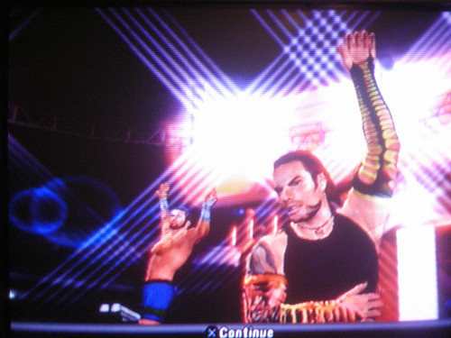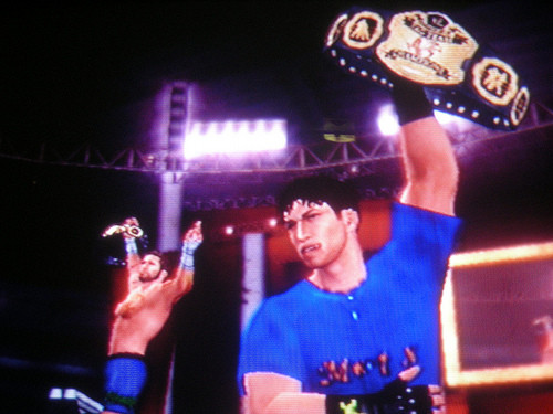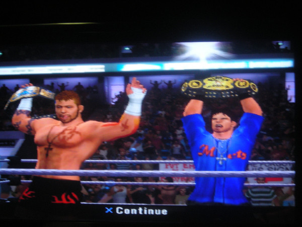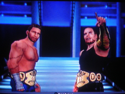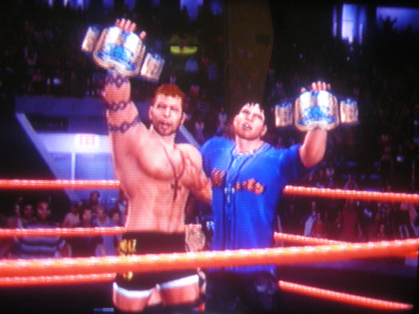 This is a shot taken with my room mates digital camera of us celebrating a successful World Tag Team Title defense in a ladder match against none other than Randy Orton & Edge, Rated RKO.Related content