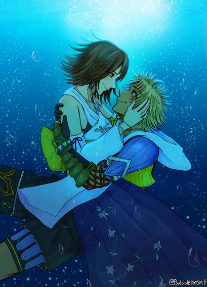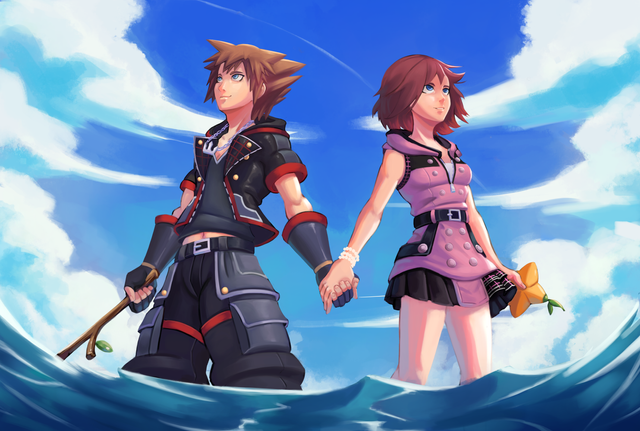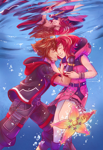 It was supposed to be only Sora and Aqua, so i drawn Sora to look up in the water as he's next to do his job while Aqua looks up for hope holding her Chest in the moment.