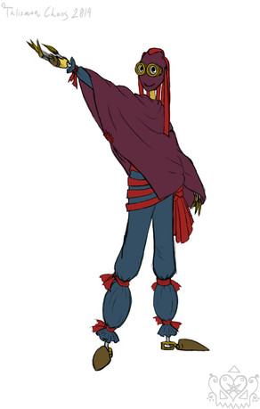 Meet 898! She is the warrior of 901's group. She is the one to call when battling is involved. Proficient in boomerangs and slings, she trips-up her foes and stalls them for the others to escape. Headstrong and independent, but tactful and responsible, she's the one to get the group out of any jams. (... Yes, even the jams of the food variety. Much to her displeasure.)She's never one to be a damsel-in-distress and enjoys the thrill of danger and adventure. That is, as long as her friends don't get hurt in the process.
