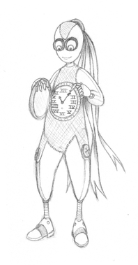 Her nickname 'Clocks' was given to her due to her love of clocks and for the small pocket watch around her neck.