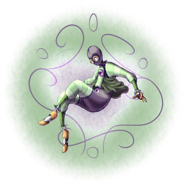 Interesting concept, that she can see souls. I like the transparent fabric on her arms and legs, too. She looks very pretty and delicate.