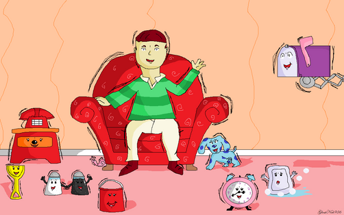 Notepad, Clock, and "Don't Hug Me I'm Scared" belongs to Becky Sloan and Joseph Pelling