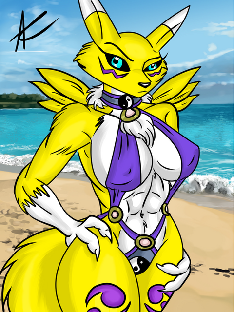 #anthro #beach #big_boobs #bikini #boobs #busty #curvy #digimon #female #furry #girl #heels #pinup #pinupgirl #renamon #summer #underboob #digimongirl #highheels