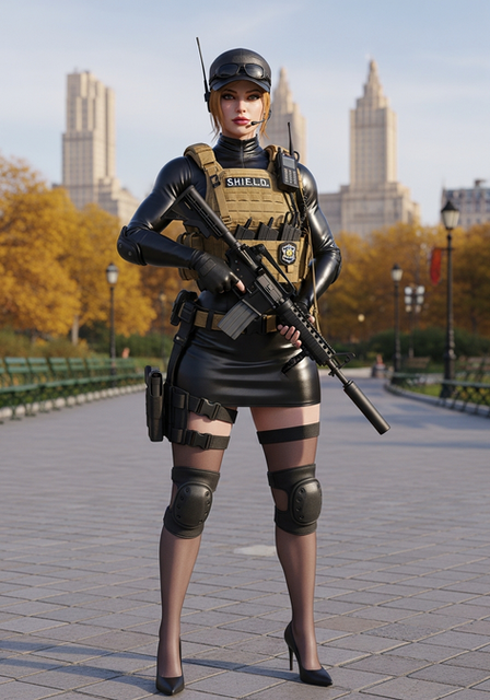 #guard #highheels #latex #pinup #pinupgirl #security #skintight #uniform #latexrubber #thighhighboots #highwaist