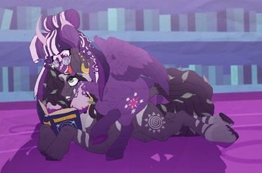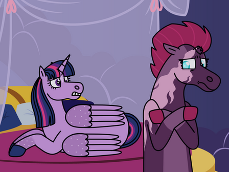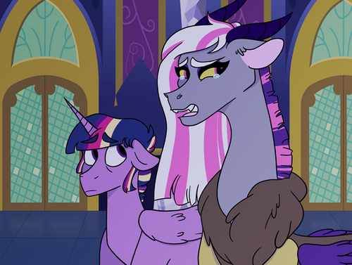 “Panny, dear, you have already come so far on such a long journey. You have already expressed such determination and loyalty to the kingdom. Things of which are important in a princess. Do you really want to give that up now?” She placed a hoof on her daughter’s shoulder, causing her to look up and shake her head; Twilight gave another sweet smile, using her own magic to shift back the loose strands of Pandora’s hair, “Sweetheart, you must believe in yourself. You have so much talent.”--------------------------------------------------------------------------------------------
