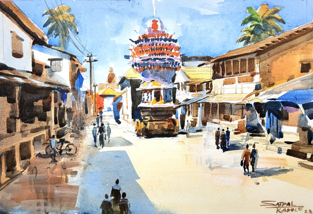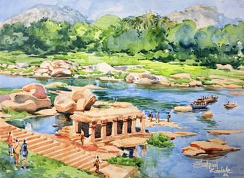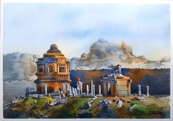 Vijaynagara (Hampi) india, watercolor painting on handmade paper, 16"× 12"Related content