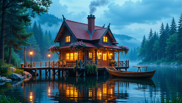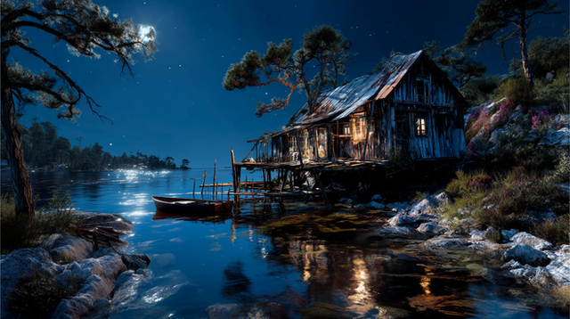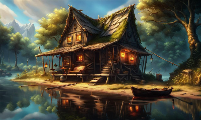 Escape the hustle, find your riverside haven. 🌊🏠Nestled along the serene banks of the river, a single-story shack stands as a humble haven for those seeking solace and a connection with nature. The soft glow of gas lamps casts a warm, inviting light on the weathered wooden walls, guiding the way to the cozy interior.