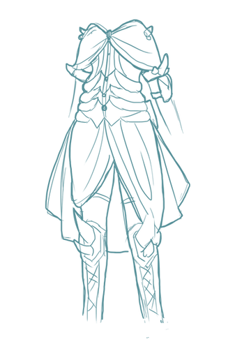 She has a lot of design elements that corresponds to her occupation as a pond witch. Her hair is actually alive, the ends of her hair actually being enchanted to become fish, which often swim around her head, giving her hair a gentle lift. Her cape has the shape of dragonfly wings behind her, something she wears with pride to celebrate her heritage.