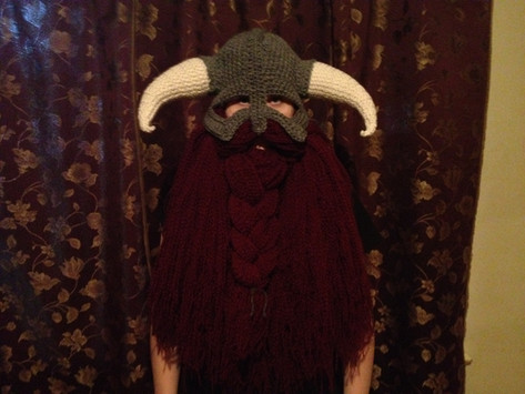The pattern for the helmet and beard are for sale in my etsy shop. This beard is crafted a little differently than the pattern however, I used white red heart super saver and white fun fur held together, I also only stitched yarn in place every other stitch over the whole thing cept for the top row, I stitch in every stitch there to make it look even. If you decide to make it feel free to contact me with any questions you have.