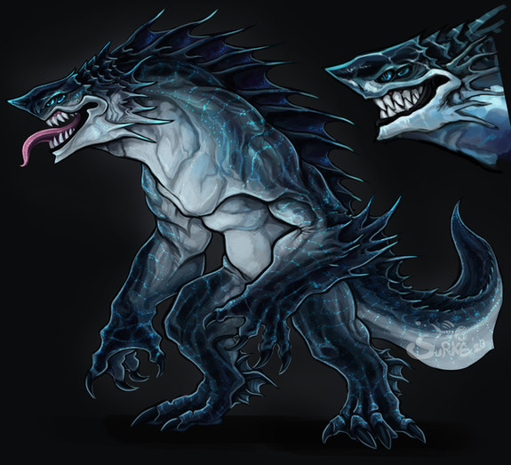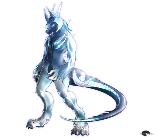 #monster #beast #background #beastly #big #blue #buff #claws #comm #commission #crystal #female #hair #mane #muscular #render #reptile #samantha #scalie #stacked #stripes #kajiu #art
