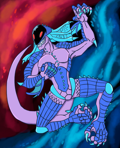 #anthro #blue #claws #female #furry #lizard #red #reptile #scalie #sona #long_tail