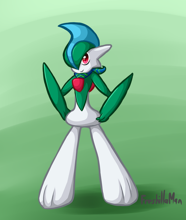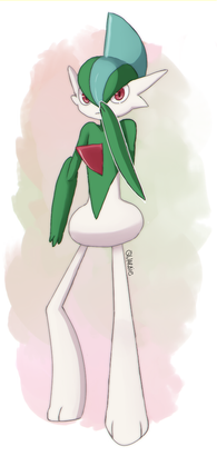 Another of my favorite pokemon (don't be surprised if I draw the Ralts line a few more times :3)I love Gallade but the one thing about his design that kinda bugged me was his weird pantaloon situation, so I got rid of it