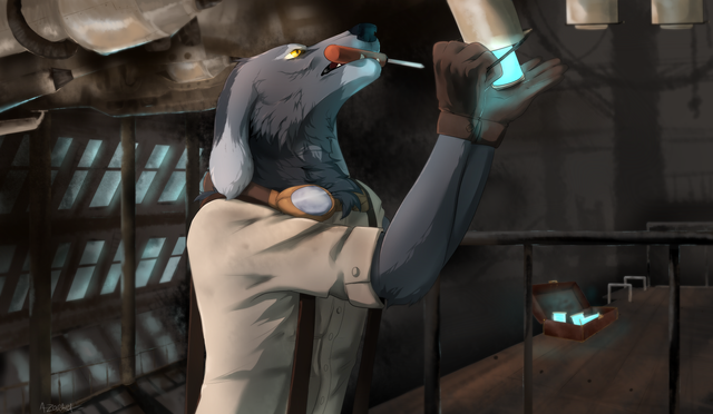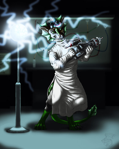 #anthro #aquatic #background #boiler #brick #character #chemical #chompers #claws #color #comm #commission #electric #goggles #green #kobold #lab #pipe #scientists #shark #sketch #steam_punk #tesla_coil #art #big_teef #checker_floor