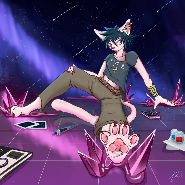 #feline #cat #furry #androgynous #background #claws #comm #commission #male #petting #pink #rub #sketch #koshina #in_bed #lay_down #art #ghost_hand
