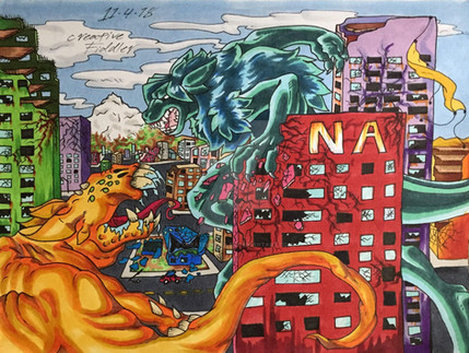 #alien #anthro #beast #blue #claws #cool #copic #giant #green #koal #mane #monster #road #shadow #sidewalk #street #sunset #tail #verycolorful #fuzzymane #iroado #iroadoadvanced #kaijuinthecity #advanced #aliencreature #building #buildingstructure #colorful #copicmarkers #creature #creaturedesign #fangs #giantmonster #kaiju #lizard #lizardanthro #monstergirl #reptile #reptilian #reptileanthro #lizardreptile #reptilelizard #anthrocharacter #kaijumonster