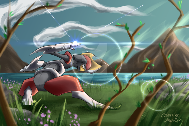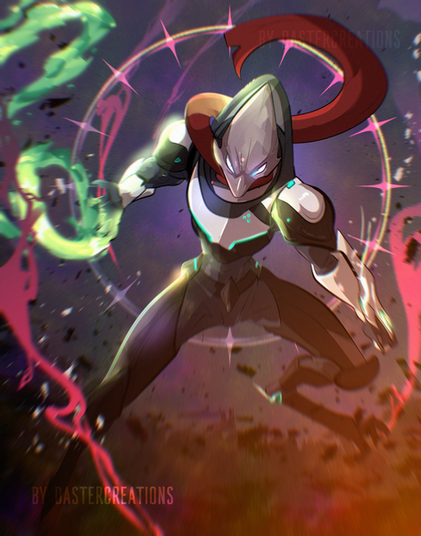 #pokemon #cape #claws #digitigrade #eyes #fluffy #jump #male #muscular #wings #gallade #pokefusion #back #patreon_reward #coffee_sketch