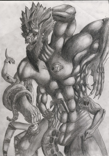 #bear #beast #black #buff #conte #evil #grey #lol #monster #muscular #oof #schoolwork #white #6arms #arom #assignment #charcoaldrawing #pentagram