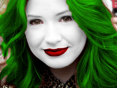 -Also for the hair... The shadows look fine, but be careful when using brightly-coloured hair to take the reflected-light into account. Light reflects off of everything it hits except black - the brighter the colour the more light is reflected. Brightly coloured hair is no exception. So, to make the hair look more natural (as natural as green can be ) try adding some faint green to the shadows and highlights on her face where the hair comes close and touches. Not much - but just enough that if you went looking for it you could see it. Remember: Most of the things that can ruin a manipulation and things that the eye does Not see, not what it sees.