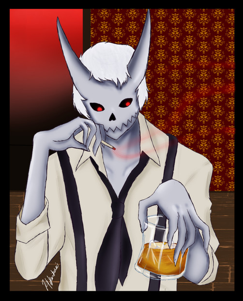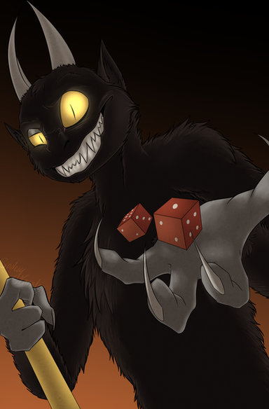 A commission from my friend Clara of our friend nipkips 's version of Devil!Mark from Cuphead the Musical, standing in front of the casino! It’s a gift from her to them!This was honestly a nice challenge and change of pace from what I normally draw, and that background was what most of the challenge consisted of, but I had a lot of fun with it!!