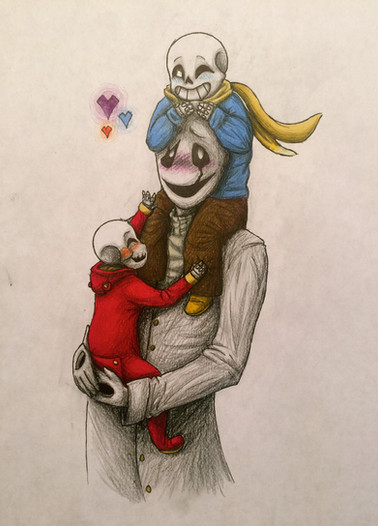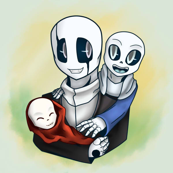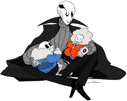 I absolutely adore the fan theory of W.D. Gaster being Sans and Papyrus's dad bc holy shit that's so cute I'm gonna scream. Nerdy void dad w/ his tiny lab baby bone sons.One big happy skelefamily~!
